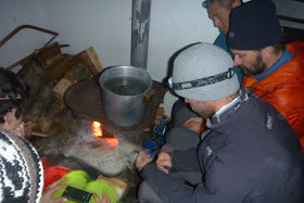Une nuit bien pressée d'arriver solstice oblige. Au retour dans la pièce commune du refuge tout le monde était bien content de voir que le poêle commençait à bombarder ses crépitements qui sont synonymes de chaleur. L'eau pour la soupe commençait à chauffer, les tasses pour le thé étaient toutes prêtes, les lardons commençaient à laisser glisser leur gras et libéraient tout leurs arômes.