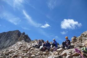 Une fois installés nous sommes repartis avec des sacs un peu plus légers faire des manipulations : construire des relais, s'encorder à deux, savoir retenir son coéquipier.
