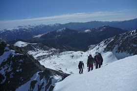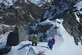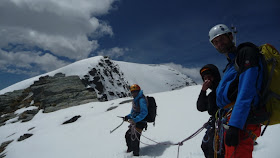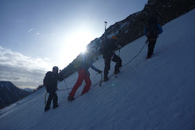 Lors de l'élaboration du programme en septembre nous avions plutôt envisagé une course rocheuse. Vue la quantité de neige qui reste en montagne et les bonnes conditions de ces derniers jours, nous avons finalement opté pour une course mixte digne d'un mois de mars.