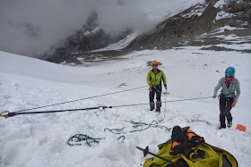 Autour du refuge du couvercle, 2 équipes de 2 cordées pour aller faire la VN de la pointe Isabella et ...
