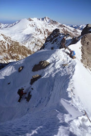 | La sortie du couloir sur l'arête, un petit 60° |