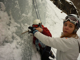 Le lundi, nous avons du faire face à un difficile dilemme, la météo était moyennement de la partie, nous avons donc décidé d'aller tous dans les Y (I, 3, 200m)à Ceillac, heureusement qu'il y a deux branches, qu'elles s'atteignent rapidement et que notre lever matinal a porté ses fruits, nous sommes les premiers. Fabien, Fabrice, Sébastian, Claire et Philippe partiront dans la branche de gauche, Philippe, Mathilde, Sébastien, Vincent et Fred dans celle de droite. L'occasion pour tous de faire des relais dans la glace (et oui on ne profite pas systématiquement des points en place), de gérer les longueurs de corde.