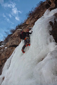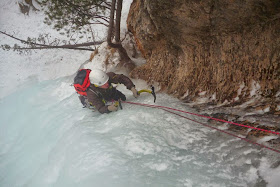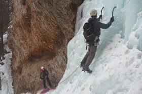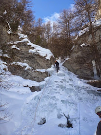 Fabien, accompagné des Seb's, de Fred et de Fabrice est allé du côté de la cascade de Ste Agathe de la Chalp (I, 3+ à 4+, 30m).