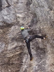 Nous terminerons tous l'après midi sur et autour du cigare de Sombre héro (I, 4+/5, 80m), l'occasion pour tous de grimper dans du raide, pour certain de s'essayer au dry (drôle de discipline, n'est-ce pas !!)