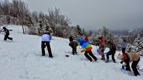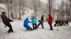 Enfin, armés de pelles c’est un concours de trous à neige : faire un trou et pouvoir s’y glisser !