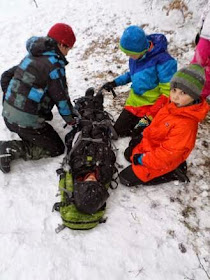 Très vite reposés les plus petits commencent à chercher un endroit pour jouer, faire des trous dans la neige.