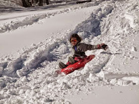 Pendant ce temps la trace est faite, les premières descente en luge peuvent se faire.