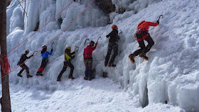 Chacun s’essaie dans des longueurs plus ou moins difficiles, certains posent des broches, fabriquent des abalakovs....