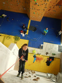4 iront faire du ski de randonnée et les 11 autres se retrouveront dans la salle pour profiter uniquement de la salle à corde. On recoupera le groupe de 11 en deux, Jordi en prenant 4 pour voir les manip de grande voie (installer un relais, faire venir son second et descendre en rappel). Philippe s'occupera des autres en voyant comment on grimpe en tête.