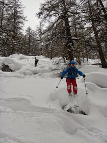 Jean est parti avec Audrey faire un petit tour un peu plus haut, dans la poudreuse... plaisir de la trace à faire.