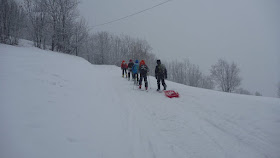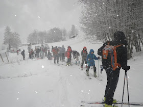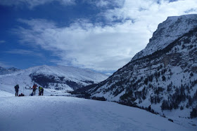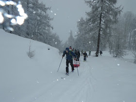 L'activité cascade n'était pas vraiment envisageable cette année (peu de choses formées pour les jeunes et une météo pas vraiment engageante pour passer du temps statique). Qu'à cela ne tienne, nous sommes tous partis dans le vallon de Narreyroux, certains en raquettes tirant une luge, d'autres en ski de randonnée. Tout le monde ne s'est pas arrêté au même endroit, certains sont montés sur la crête, d'autres ont fait une pause au hameau. Chaque cadre, en fonction de son groupe a organisé son temps de la meilleure manière.