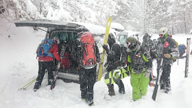Axel et Benoit auront alignés 3 jours de ski de rando et semblent toujours aussi en forme. Les cinq autres sont restés à la salle et ont eux aussi rempli leur mission puisque certains ont grimpé en tête pour la première fois alors que d'autres enchaînaient des voies dans jusqu'au 6c.