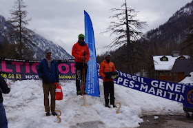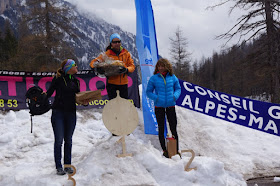 Cette année, la course comptait pour le championnat de France FFCAM et pour l'occasion nous avons fait confectionner le trophée par Sam de l'association "Les Recampums" . Pierre Verte de Tende pour le socle, profil du sommet du Bégo en mélèze de Castérino huilé et petit sorcier emblématique de la Vallée des Merveilles. Un bel objet que tous les champions ont apprécié.