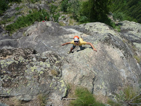 Nous nous sommes éclatés, c'était facile mais compliqué parce que je n'étais pas très confiant dans les nœuds et Nils me faisait peur en secouant la corde.
