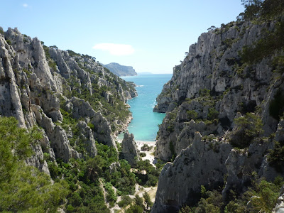 Le Dimanche 19 mai : le temps est toujours incertain sur Sainte Victoire, on change donc notre fusil d'épaule et on file dans la Calanque d'En-Vau. Ce sera l'occasion pour les stagiaires de faire l'ascension d'une voie non équipée de 5 longueurs au moins et de niveau AD. Les cordées se répartiront dans la Voie Rostand, l'Arête des Garçons de Café ou Les Chênes. L'objectif du jour mettre en pratique les éléments vus la veille (pratique de l'assurage, importance du point de renvoi,... ) et de s'y retrouver dans les informations d'un topo.